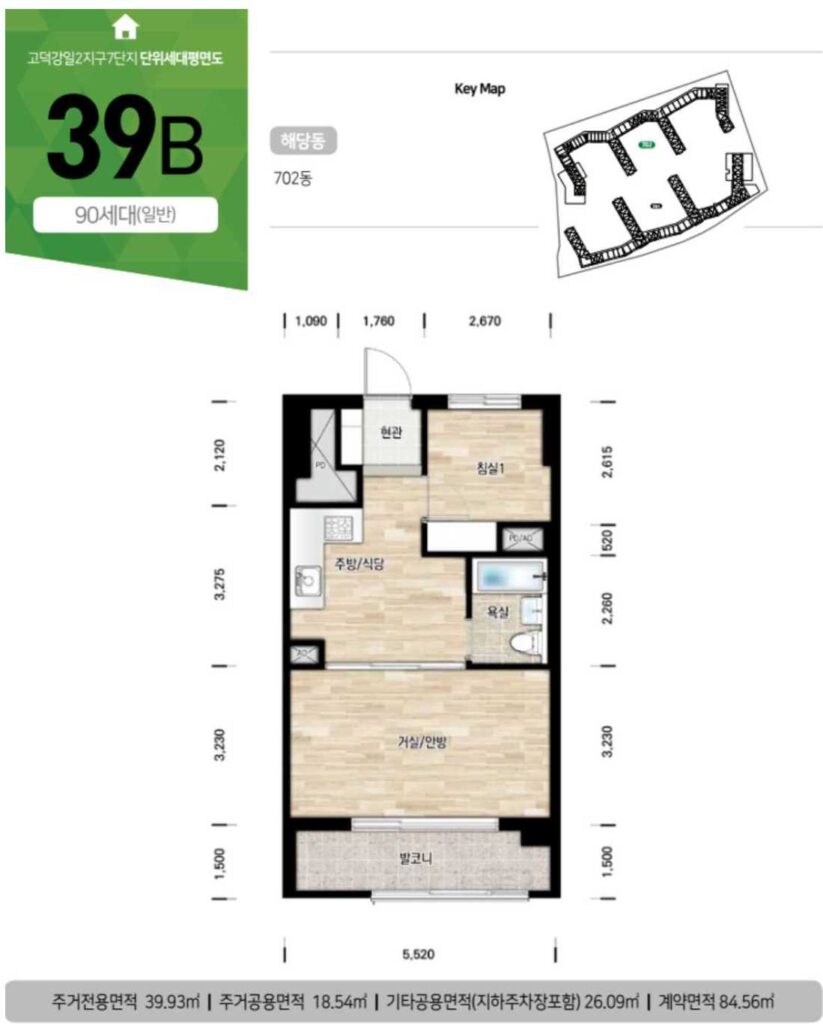 | 39㎡ | 3,700만원 | 26만원 |