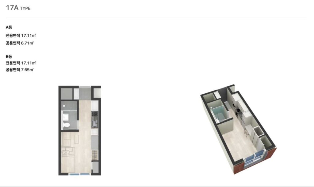 | 17㎡ | 5,800만원 | 36만원 |
